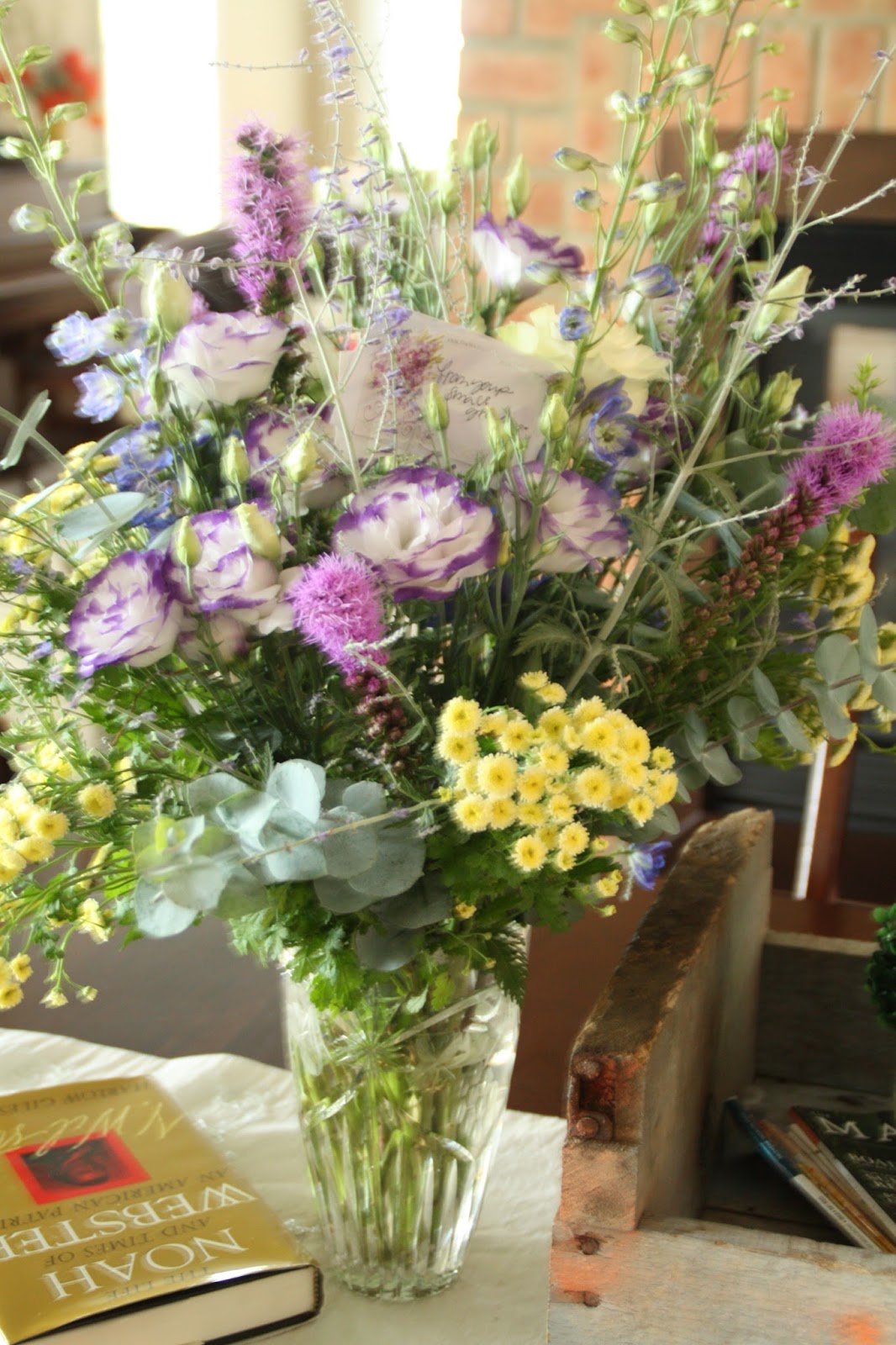 When I walked into our house on Friday night I said, "OK, who was here???" The house was cleaned! The laundry was done and folded! There were now four bouquets in our kitchen. We received two fruit arrangements. There was a birthday cake on the counter for Matthew! It was all so overwhelming!!! THANK YOU!!! (Jody and Fannie Lynn cleaned my house!!!) I made the comment that there is something like being tired and then there is something like being exhausted!!! My muscles were hurting and I was so ready for the hot shower and to lie down! But because it was Matthew's birthday, we ordered pizza and watched a movie yet with him!!! My parents stopped in for a few minutes too. Sleep felt so good that night!!!
