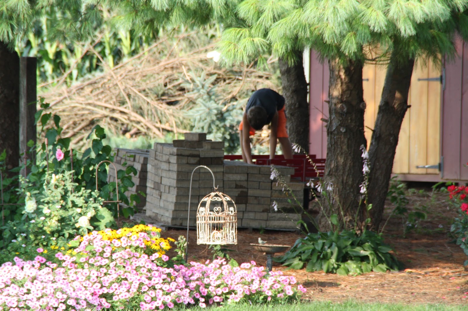 Matthew working on his pavers.